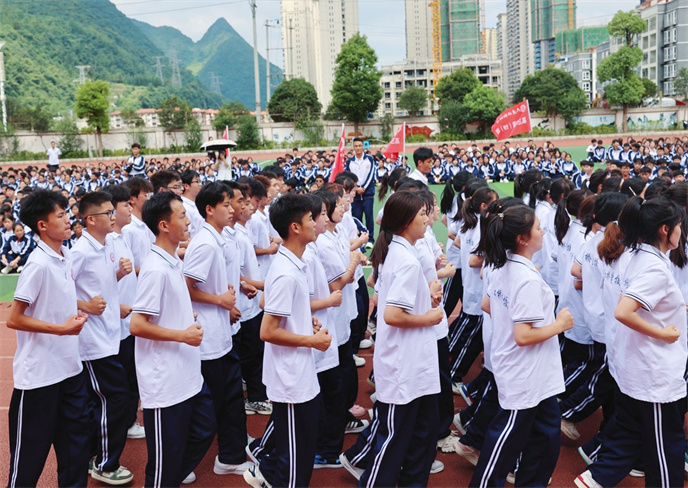 為了培養(yǎng)學生團結協(xié)作的集體主義精神,增強學生身體素質(zhì),豐富校園文化生活,增強班級凝聚力、向心力,展示學生的青春風采,8月9日上午,我校舉行高三年級跑操比賽。